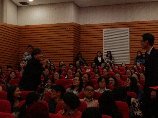 第一环节的两段视频分别是可乐的盛行现象给公益组织的启发和李开复如何回应网友的质疑。视频内容贴近生活,信息量大,也更加考验选手翻译的准确性和连贯性。参赛选手的精彩表现赢得了在场观众的阵阵掌声。