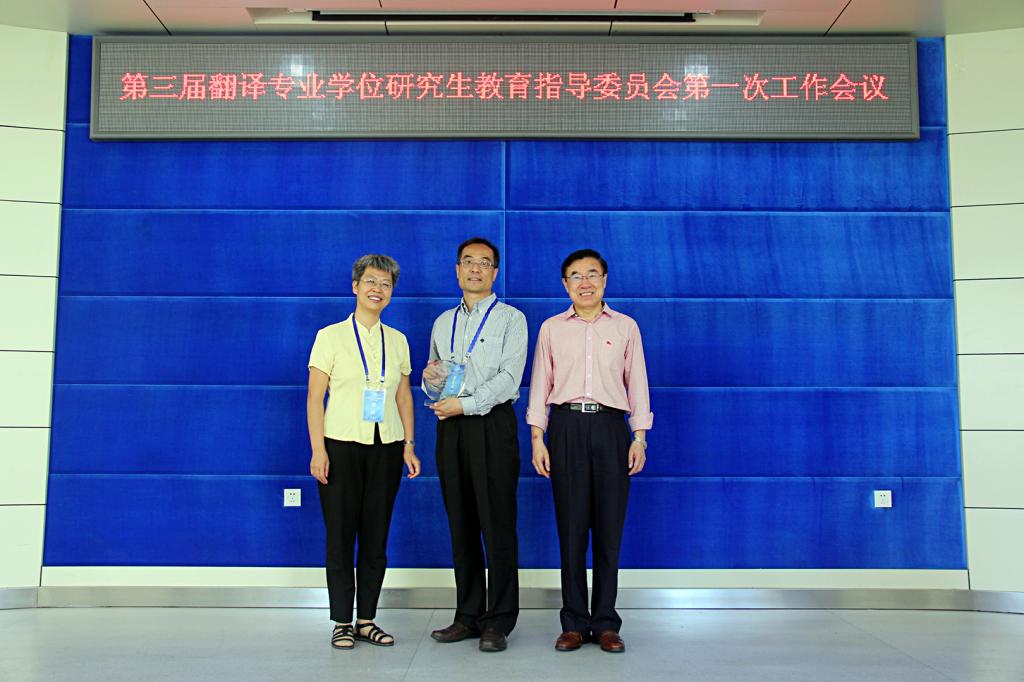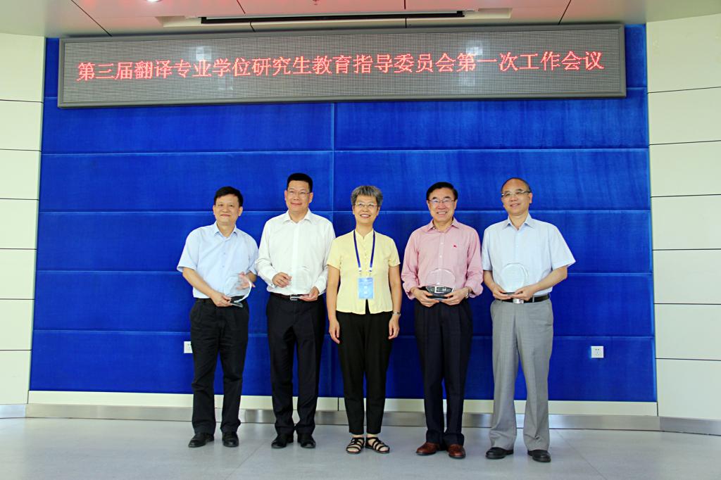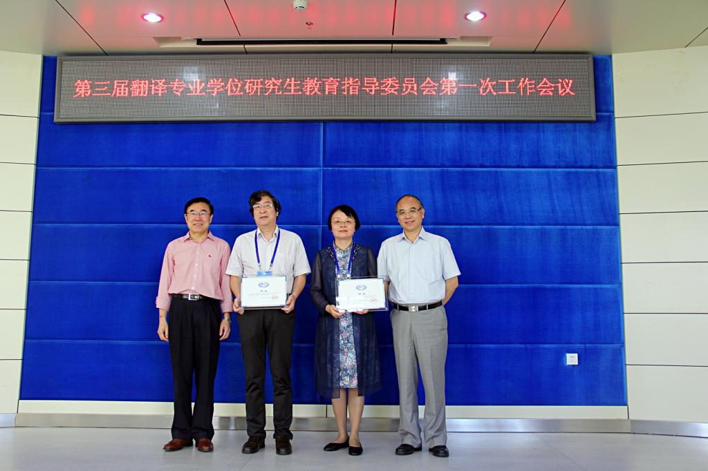 陆敏处长为第三届教指委主任委员黄友义教授和副主任委员仲伟合教授、许钧教授、蒋洪新教授颁发纪念牌