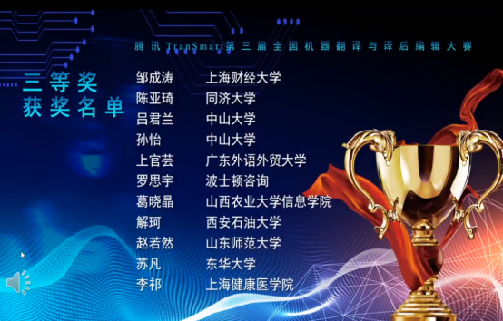 机器翻译与译后编辑大赛云端举办颁奖典礼