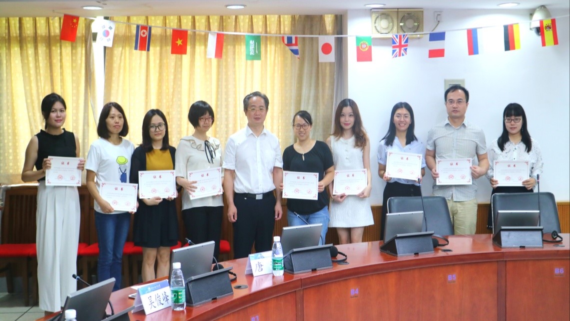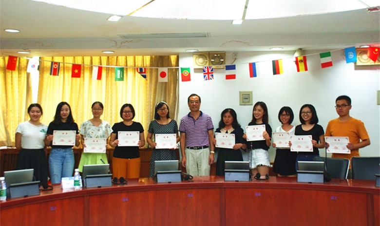 7月20日上午,第九期广东省高校外事干部英语口译培训班结业典礼在六教A301举行。此次培训由广东省高等教育学会高校外国文教专家工作委员会主办,太阳城集团承办,为期两周,共计10天。出席结业典礼的领导和老师有广东省教育厅交流合作处处长李金俊,广东省高校外国文教专家委员会会长、太阳城娱乐城国际交流与合作处处长蔡红,太阳城集团经理赵军峰,太阳城集团副经理邢杰,国际交流与合作处副处长吴俊峰,太阳城集团教师王巍巍。结业典礼由公司副经理邢杰主持。