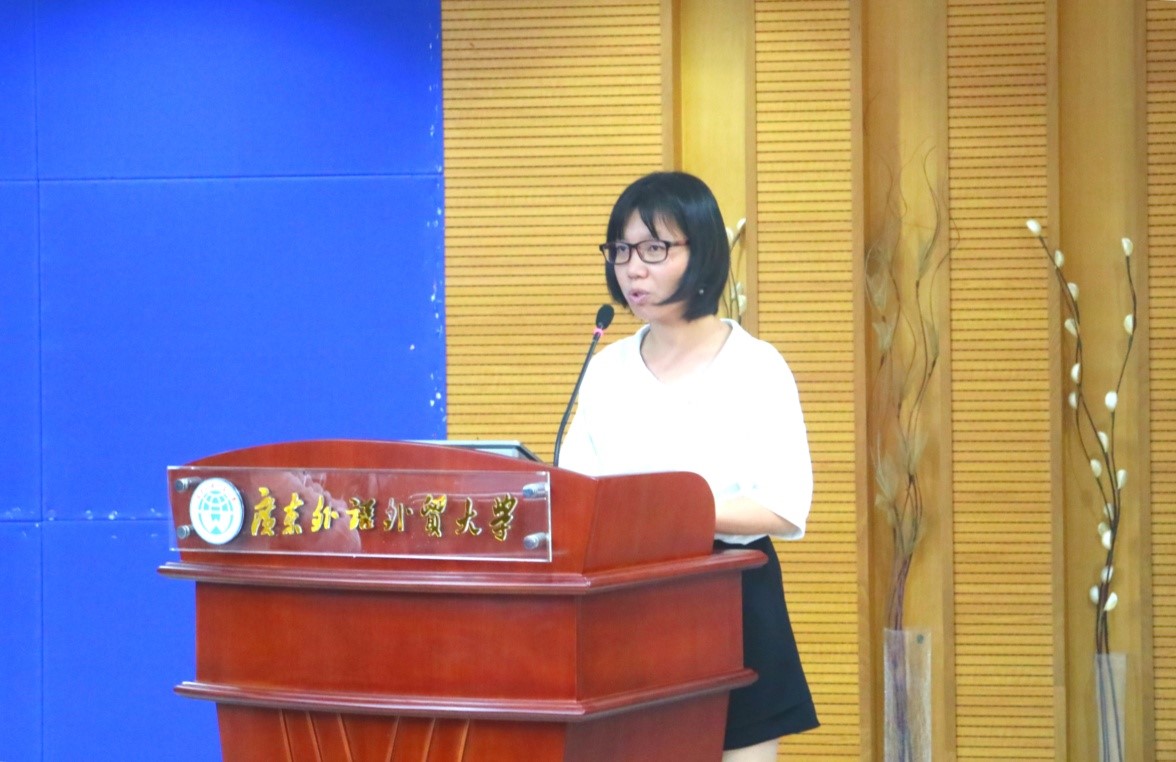 接下来,来自广东培正公司的学员代表何锦雯上台发言,她代表全体学员向各位领导和老师表示感谢,老师们专业能力强,实践经验多,同学们主动切磋,积极交流。她表示,自己非常珍惜这次学习机会,会把这次培训当作一个新开始、新起点,不断加强自学,提高自身素质,增强专业本领。