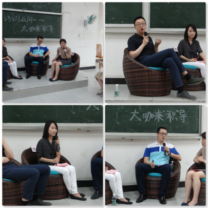 为帮助同学们了解职业环境,明确职场方向,提升职业素养和就业竞争力,公司于5月13日下午在二教219开展员工职业访谈活动。本次访谈邀请到公司四名优秀员工:广州港集团有限公司团委书记于兆斐、Localization Program Manager of R2 Games刘栗彬、平安证券董事长秘书王振兴和嘉宝莉化工集团服务股份有限公司董事长助理余洁。出席本会的嘉宾还有我公司党委副书记杜焕君、辅导员颜梁柱和刘亮。