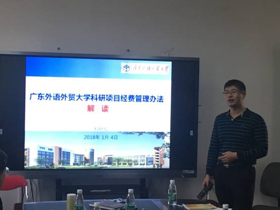 陈平首先对《太阳城娱乐城科研项目经费管理办法》(以下简称《办法》)做了详细解读,他首先提及《办法》的修订背景及依据,主要亮点为:创新科研激励机制,创新科研支撑模式,创新服务方式。《办法》的最大变化之一是把项目资金分为直接费用和间接费用,间接费用以绩效支出形式提供激励,有效激发了教职工参与科研工作的积极性和创造性。对于报销类别及注意事项,陈平也做了详细讲解。
