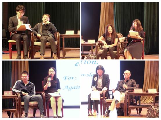 中文嘉宾立场鲜明,旁征博引,引用了中国古代的方仲永、杜甫、庄子和西方著名艺术家毕加索等历史人物,充分阐述了教育对创意培养的重要性。在第二辩题中,他们从流行文化内容变化多端、好坏参半和青少年的鉴别能力不足等方面阐述了流行文化不应该收入中小学教材这一观点。外教嘉宾们的观点也很新颖,以著名艺术创造家为切入点,提出传统教育与流行文化相结合的方式以提高同学们的学习兴趣的精妙结论。