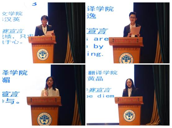 本次大赛分为两个环节。第一环节是短视频的英译中和中译英,由评委评定8名选手晋级。第二环节是对话口译,晋级选手分为两组,分别为四位嘉宾提供中、英文现场翻译。