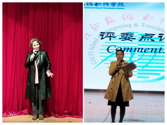 资深翻译专家、英文公司教授冯之林,经理助理兼口译系主任唐芳副教授,国家级口译教学团队成员钱芳讲师,公司口译系讲师许艺担任本次大赛评委。公司经理赵军峰教授,党委书记刘志军,党委副书记杜焕君,“云山资深教授”傅鹏辉等公司教师出席本次大赛。本次大赛还特邀中国语言文化公司何光顺教授、左岩副教授,外教Chad Stuart Owsley和Esperanza Mclean担任对话口译环节嘉宾。