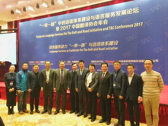 12月1-2日,公司经理赵军峰教授,博士生导师仲伟合教授、穆雷教授,副经理詹成教授,教师平洪教授、蓝红军教授、邹兵博士,翻译学研究中心黄忠廉教授,外语研究与语言服务协同创新中心葛诗利教授、王华树博士,以及博士生赵田园、硕士生陈杲,应中国翻译协会邀请出席“一带一路”中的话语体系建设与语言服务发展论坛暨2017中国翻译协会年会。