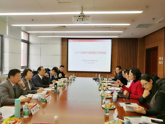会议期间,赵军峰、穆雷、邹兵应邀赴中国政法大学参加2017立格外语联盟工作会议,与全国政法类重点高校的外语与翻译院系负责人共同探讨法律外语与翻译人才培养的核心议题。赵军峰、穆雷还应邀与中国翻译协会秘书处杨平处长、刘强副处长进行会谈,商讨公司与中国翻译协会共同举办第三十届韩素音青年翻译奖竞赛的相关事宜。
