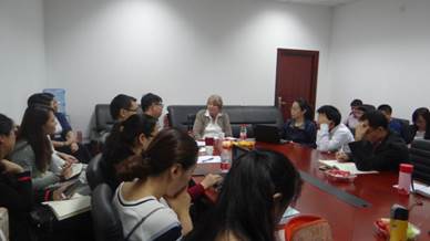 与此同时,公司还邀请到德国功能翻译学派代表人物Christiane Nord教授与公司青年学者开展交流座谈会。在本次座谈会中Nord教授结合实例,就德国功能主义目的论的核心概念,如“adequacy”, “skopos”, “loyalty”等,与在场青年学者进行了交流。公司博士生也就当下翻译研究的热点问题与Nord教授展开热烈的讨论。