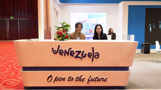 陆绮琪(左)、李浩(右)为委内瑞拉展台提供接待与翻译服务