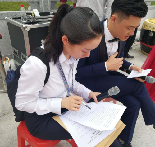 此次口译我的任务共有两部分:为歌舞表演主持人做交传,和陪同外国游客进行景点英文讲解。我在前一天收到了主持人串词的最终版,翻译并修改好发给了港务局过目。主持人交传还是比较简单,我到后台之后和主持人对好稿子,整个过程相当于做了一次英文主持,这个经历也是挺新鲜的。后来收到客户反馈主持人串词念的很棒。