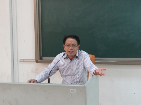 欧阳利锋教授对汉译英参赛译文进行了点评。他首先分析了文章的时代背景和语言特点,并告诉在场同学:好的翻译要传达出和原文一般的文风和神韵,要“得作者之志”。接着,欧阳老师从语法、搭配、语言地道程度等角度出发,结合具体语境为同学们进行翻译思路上的点拨。同时,他还指出,汉译英要学会合句和精简表达,使译文贴近译入语,对于涉及历史文化背景的内容则要适当增译,便于读者理解原文、传递信息。