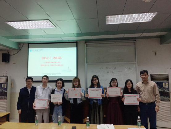最后,叶开副处长为获奖同学颁发荣誉证书,他对员工们积极上进、拼搏进取的学习及工作态度表示了赞扬和鼓励,对“高翻译家亲”的优良传统给予了充分肯定。获奖同学表示今后将继续努力,发光发热,带动大家共同进步。至此,大会在掌声中落幕。