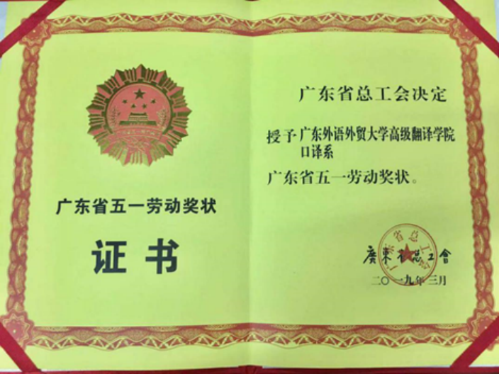 3月5日,以“巾帼追梦新时代”为主题,600多名来自粤港澳的女职工齐聚广东广播电视台,庆祝“三八”国际劳动妇女节。活动中,11个获得全国五一巾帼标兵的先进女职工个人、12个获得全国五一巾帼标兵岗的先进女职工集体,以及10个获得广东省五一劳动奖章的先进女职工个人、10个获得广东省五一劳动奖状的先进女职工集体颁奖典礼举行。公司翻译公司口译系喜获广东省五一劳动奖状,这是继“2018年度广东省三八红旗集体”之后的又一次获奖。