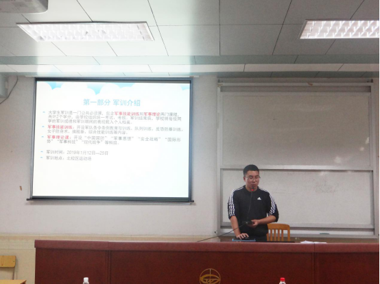 1月11日下午,公司在四教424室召开了军训动员大会。公司党委副书记张林茂、辅导员颜梁柱、刘亮以及2018级全体本科生参加了本次大会。