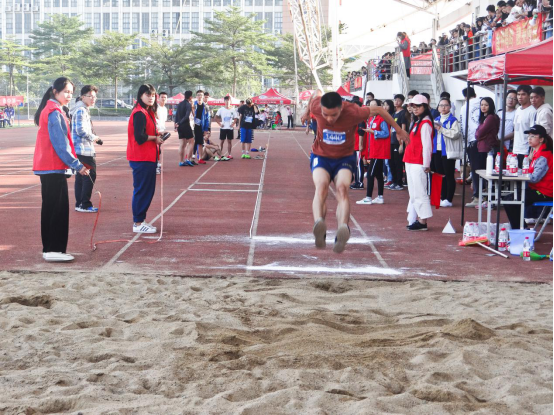 杨伟鑫和蔡贝宁同学代表公司参加了男子跳远比赛,在充分的助跑后他们果断起跳,随后利落着地,整个过程一气呵成,跳跃的弧线在空中划出优美的弧度,运动的力量之美得到了充分展现。