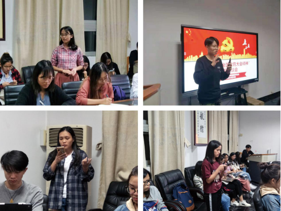 宣传部部长刘晓茜对宣传部两个月来的工作成绩进行梳理,反省了不足并制定了相应的提升计划。实践部部长邝钰雯汇报了三下乡表彰大会的举办情况,简述了实践部十一月份的秋季招聘会工作计划并呼吁各部门积极配合。本科组织部部长何晓斐对志愿活动的组织情况和团管关系转接的情况进行了汇报,未来打算完善工作流程,督促班级团日活动的开展。