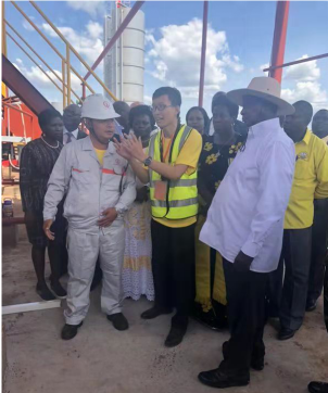 吕昊(中)为乌干达总统讲解选矿厂的运作