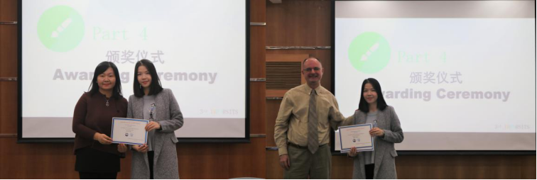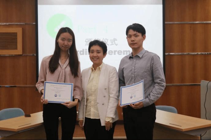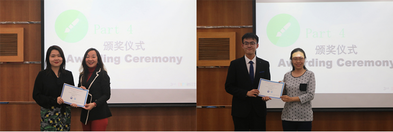 最受欢迎讲者、最佳讲者张瑶(左),最佳中文辩手王俊值(右)