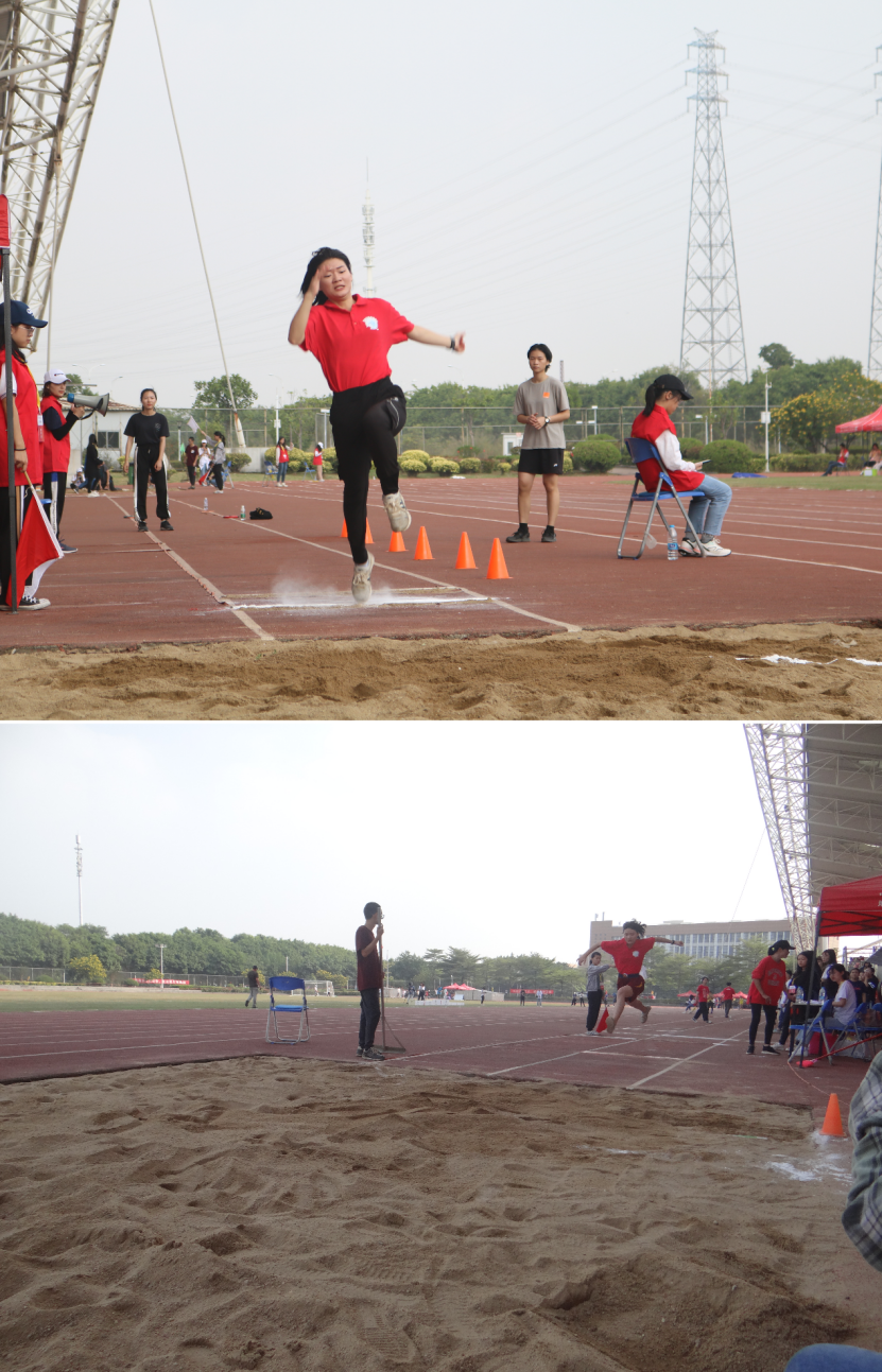 袁楚虹作为代表分别参加了上午的女子跳远决赛和下午的三级跳远决赛。在比赛中,她以速度极快的助跑后奋力一跃,犹如“鲤鱼跃龙门”一般,在空中划出了一道优美的弧线。