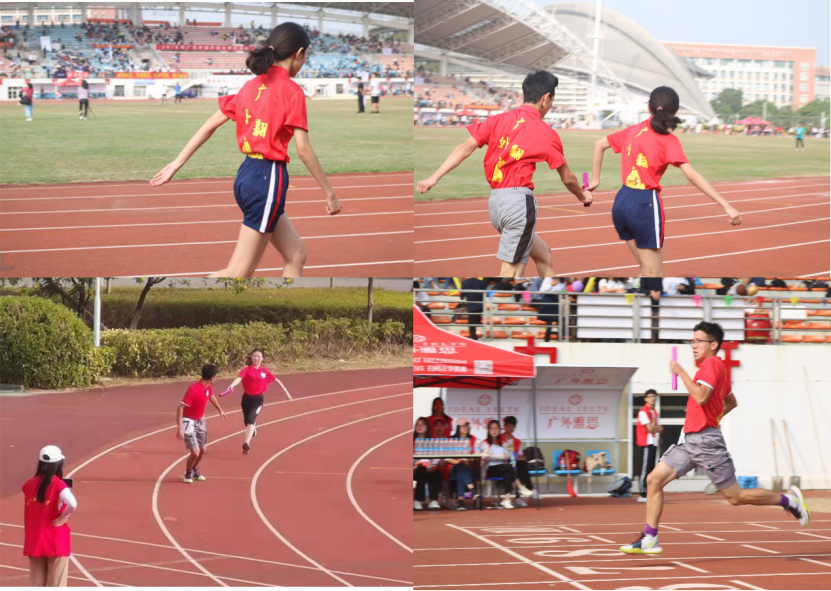 男女混合4×100米接力比赛上,毛珊、冼卓盈、梁晓伟、林泽鹏四位选手配合默契,红色木棒传递的是凝聚力,演绎的是奋斗和拼搏,他们用尽全力奔跑冲刺,使跑道成为了他们的“舞台”。