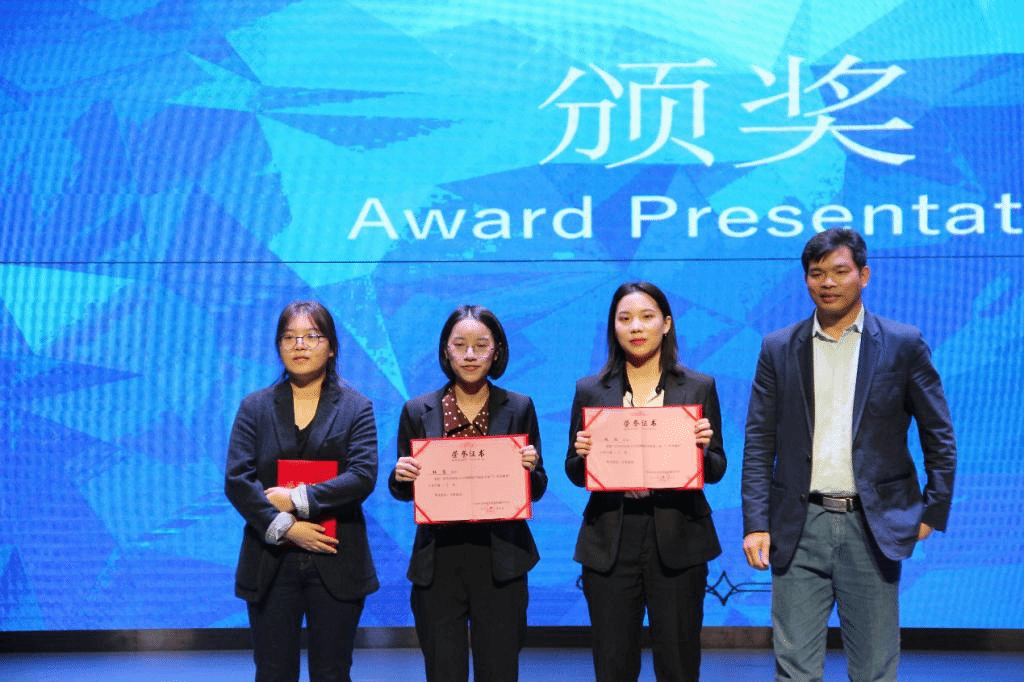 副书记张林茂为三等奖获得者杨舒婷、杜蕊、陈欣颁奖