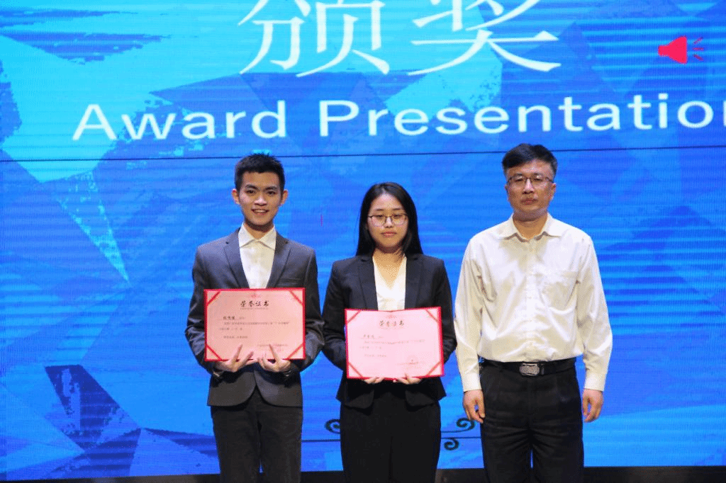 李和民书记为二等奖获得者张鸣健、卢紫嫣颁奖