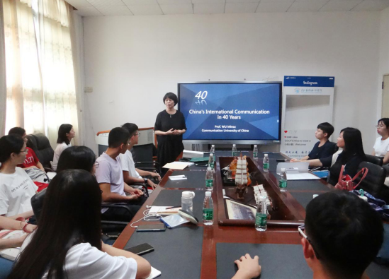 9月17日下午,岭南译学前沿系列讲座第178讲在第四教学楼402会议室开讲。中国传媒大学新闻传播学部副学部长、博士生导师吴敏苏教授应翻译教育实践基地专业竞赛部邀请作主题演讲,回顾中国国际传播及对外交流40载征程。陈朗老师主持讲座。