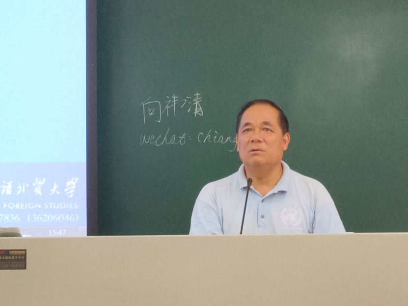 随后,陈峰老师向在场同学即兴提出了几个问题,诸如:插队下乡怎么翻?知青如何译?春秋战国的英文是什么?联合国是哪年成立的?等等。同学们积极回答,现场气氛热烈。