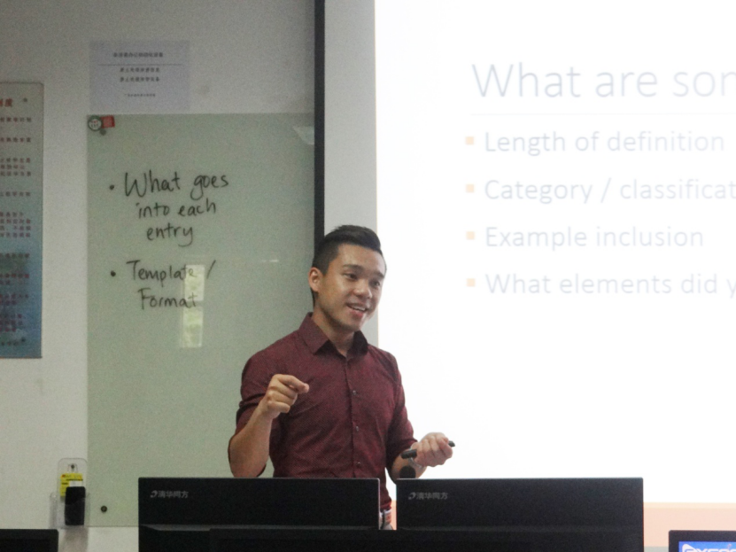 6月29日下午,由美国德州理工大学的助理教授Jason Tham教授的课程Content Management and Structured Authoring也正式开讲。该课程的主要内容涉及分析项目与定制内容目标、分析受众需求、审核内容并提出改进意见、使用现成模板创建网站等六大方面,具有一定的学习难度。第一堂课,Jason主要讲解了技术内容的产生过程、好内容的特点、关于内容管理的设想和受众分析四大内容。在授课过程中,Jason与同学们亲切互动,布置了全班共同编写小词典的任务,组织大家玩扮演餐馆经理和顾客的游戏,加深了同学们对课程内容的理解。