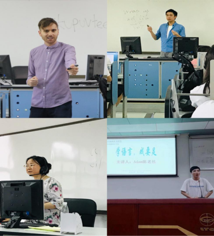 授课老师:James Campion(左上)、陈书君(右上)、刘莹(左下)、Adam陈老丝(右下)