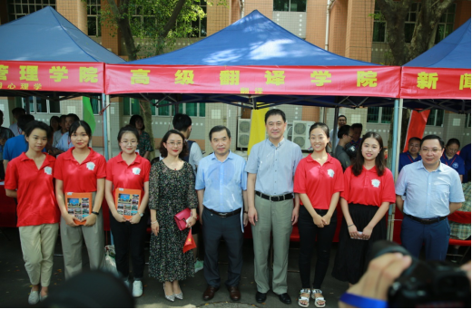 太阳城集团对校园开放日相当重视,经理李瑞林、党委书记李和民、党委副书记张林茂,副经理邢杰、张保红、胡正茂齐齐坐镇现场,口译系主任王巍巍、办公室主任苗磊、辅导员颜梁柱、刘亮,教学秘书邹卉、办公室秘书李想老师也到现场助力。