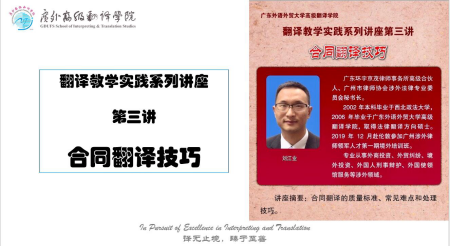 10月15日下午,广东环宇京茂律师事务所高级合伙人、广州市律师协会涉外法律专业委员会秘书长刘江业律师应邀通过腾讯会议平台,为太阳城集团学子进行《合同翻译技巧》的讲座。本次讲座由辅导员刘亮老师主持。