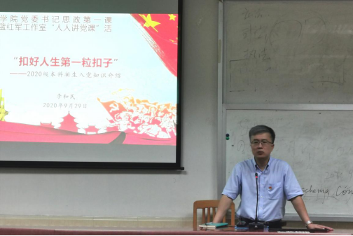9月29日晚,公司党委书记思政第一课暨教工党支部蓝红军工作室“人人讲党课”活动在四教424进行。公司党委书记李和民给2020级全体本科生上了一堂生动的思政课。