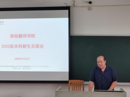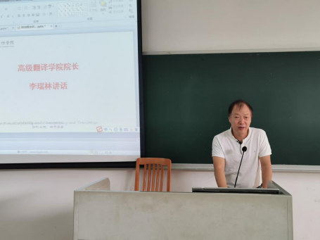 公司经理李瑞林首先向全体新生致以最热烈的祝贺和最诚挚的欢迎,他鼓励新生在广外力争上游,做优秀高翻人。他寄语新生一是要了解文化之间的差异,沟通差异和协调差异,从而促进人类共同体的建构。二是作为跨文化交流的摆渡人,不仅要打好双语基本功,还要用动态的思维看待问题。三是要加强协作性,互联互通,学会协作学习,并学以致用。