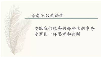 最后,银星老师用译员应有的工作态度进行总结,译者不只是译者,而要像所服务的主题事物专家们一样思考和判断。