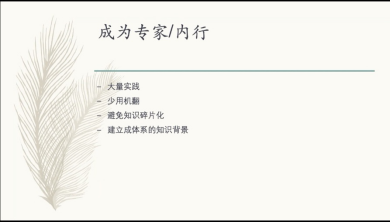 接下来,银星老师讲述了译员如何从初期外行者成为专家或者内行。其中,四个方面必不可少,即大量实践、少用机翻、避免知识碎片化以及建立成体系的知识背景,老师用自身口笔译练习字数来说明大量实践不仅带来知识速度的提升,也会有规律法则的积累;同时建议少用机翻,让口译与笔译相互辅佐,锻炼自身思维。