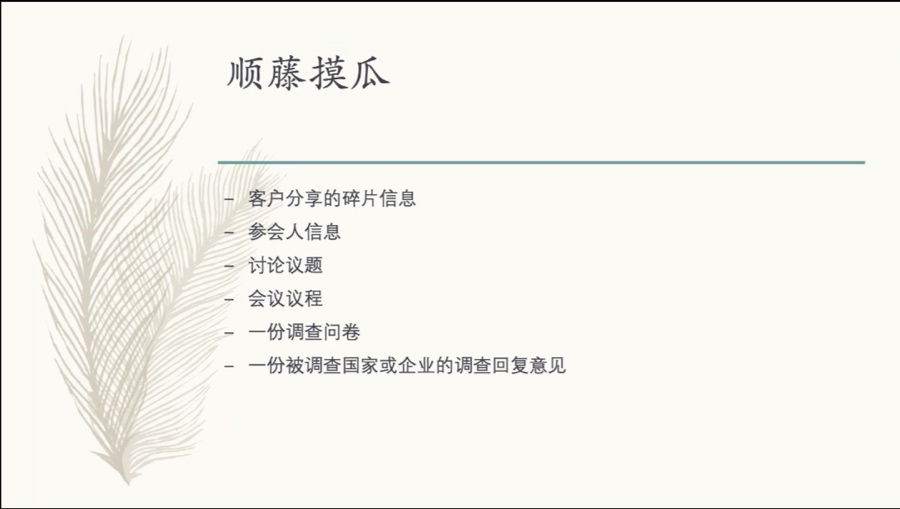 银星老师首先谈到如何有的放矢,译者应根据会议性质和受众明确自身定位,以提供更优质的翻译服务,并以某次工作实例具体阐述如何进行充分的译前准备,以及架构知识体系的重要性。译员要发挥其主观能动性,从上到下,深入挖掘客户能够提供给译员的碎片信息,并串联起来,构成全面的知识框架。