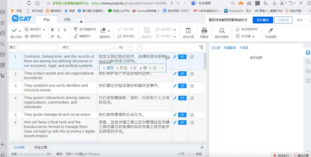刘宁赫老师演示使用YiCAT进行译后编辑