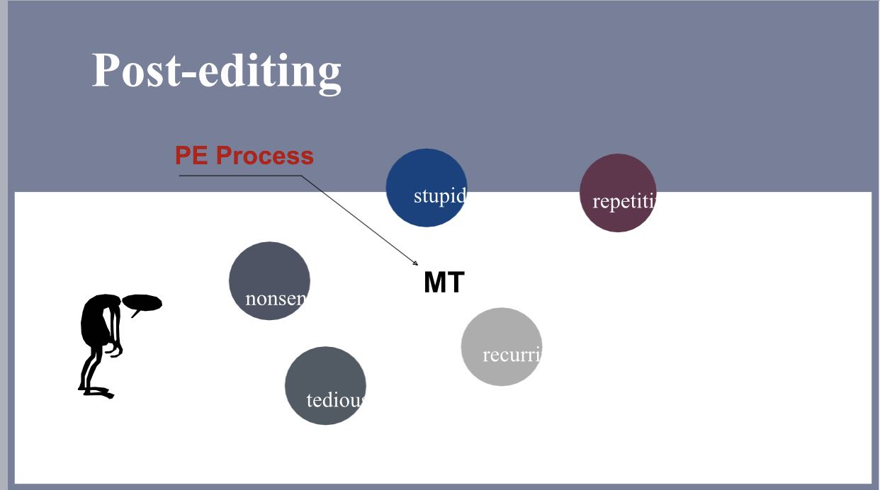 8月23日上午,全球知名语言服务提供商——TransPerfect中国区经理、高级翻译陈方为本次工作坊的学员带来了“TransPerfect译后编辑流程与实例”的相关知识。作为一名资深翻译和项目经理,陈方老师不仅从宏观角度分享了商业化语言服务提供商的运作模式,而且阐述了机器翻译在翻译公司中的应用。他还详细地介绍了MTPE、机器翻译译文的质量评估、如何选择适合机器翻译的项目以及译员如何与工程师进行有效沟通从而提高机器翻译的准确度等。陈方老师认为机器翻译尚无法从语义角度理解文本内容,机器翻译距离取代人工翻译还有相当大的距离。