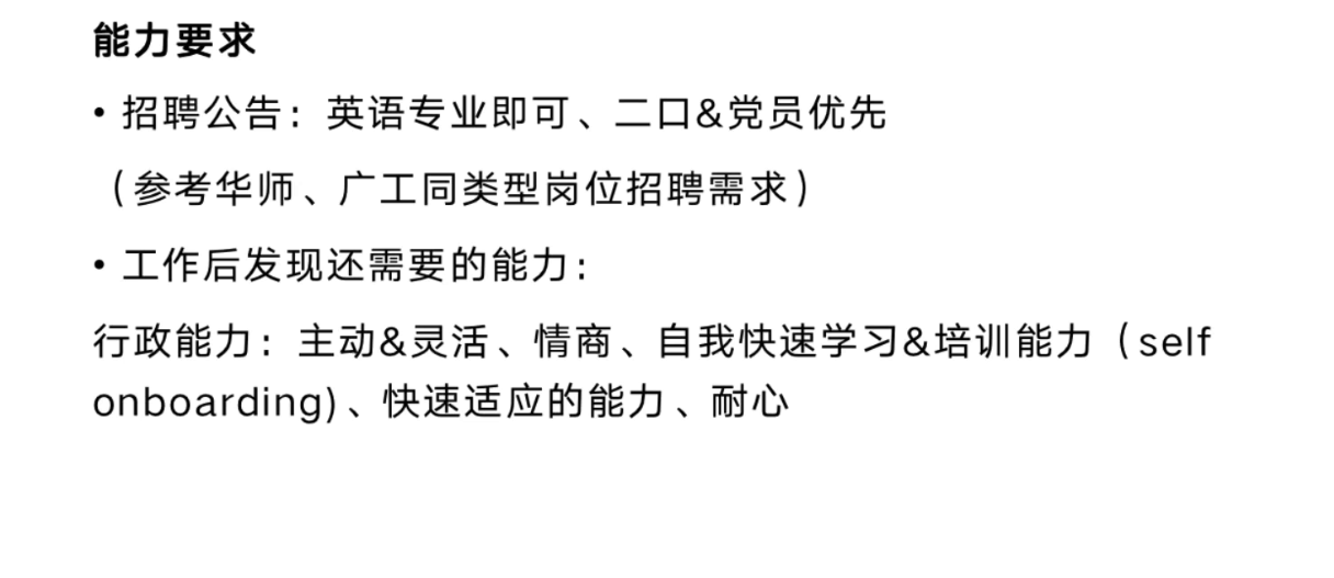 王小羽认为高校行政岗位的职能是服务整个公司的发展,和各个部门联动、合作至关重要。此外,国际交流处需要与海外公司的对接人合作,内容主要包括签协议,这意味同学们需要对法律文书有所了解,培养法律翻译能力。