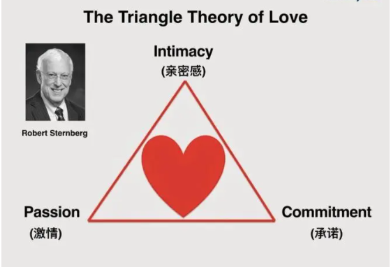 将爱情上升到理论高度,杨教授分享了爱情三角理论(A Triangular Theory of Love),该理论认为,爱情是由三个基本要素组成:亲密、激情和承诺。其中在恋爱初期,“激情”最重要;之后,“亲密”占据上风;到了最后阶段,“承诺”成为最强有力的因素。杨教授强调,男生要注意不要被本能的激情裹挟,一味地加快恋爱进程。