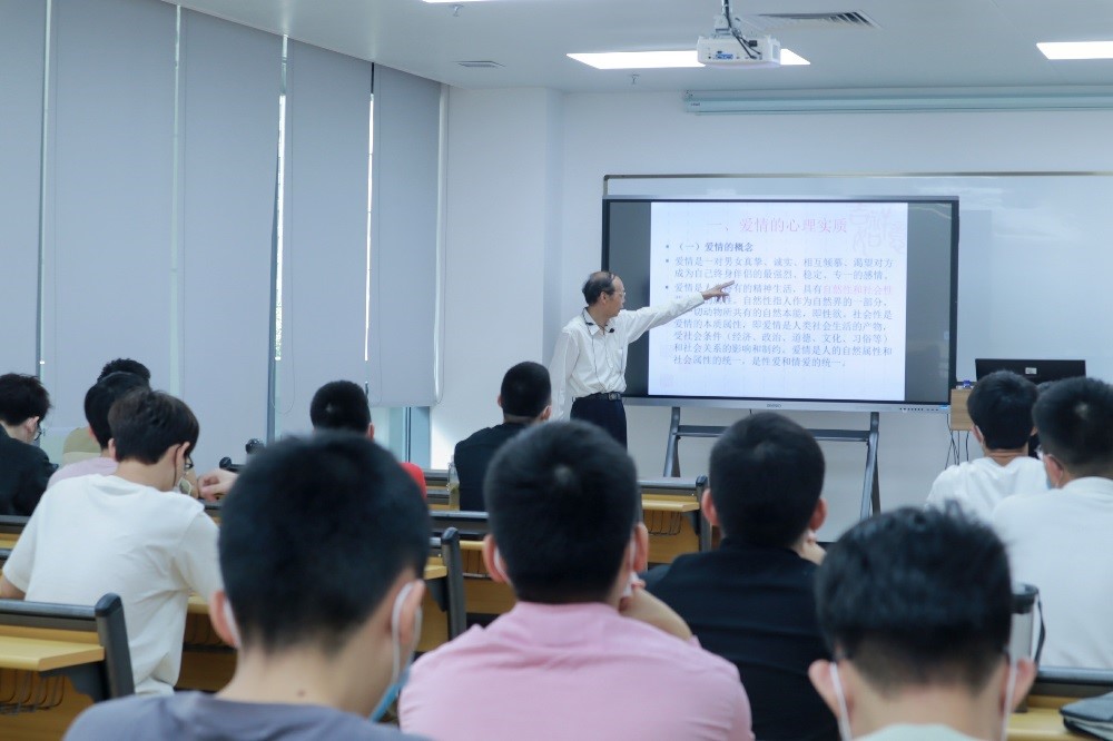 杨韶刚教授从“爱”这个字的含义出发,带领在座的男同学们一起揭开“爱情”的面纱。爱,在《说文解字》中解释为:行皃,一起走路的样子。显而易见,恋爱是双方之间的相互爱慕与爱慕行为的表现。杨教授提及,一般我们会经历从相识、认同、喜欢再到吸引这样一个过程。并强调爱情的最终目的是“寻找终身伴侣”,达到不言不语也能体察、理解对方的需求,慢慢地也可能会出现我们所说的“夫妻相”,这样的爱情不会随着年岁的增长而衰弱。
