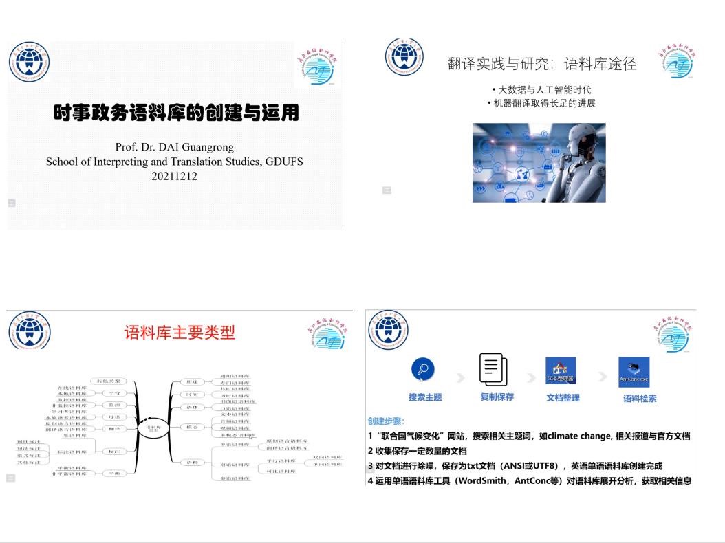 戴光荣教授为学员讲授了时事政务语料库的创建与运用。他指出,现在是大数据和人工智能时代,机器翻译的能力有了长足的发展和进步,但其产出质量仍有待提升。他认为,有好的输入才能有好的输出,创建语料库则是保障机器翻译质量的重要手段。他向学员们介绍了语料库的主要类型和创建步骤,推荐了优质的语料库资源,还亲自展示了AntConc等语料库检索软件的使用方法。