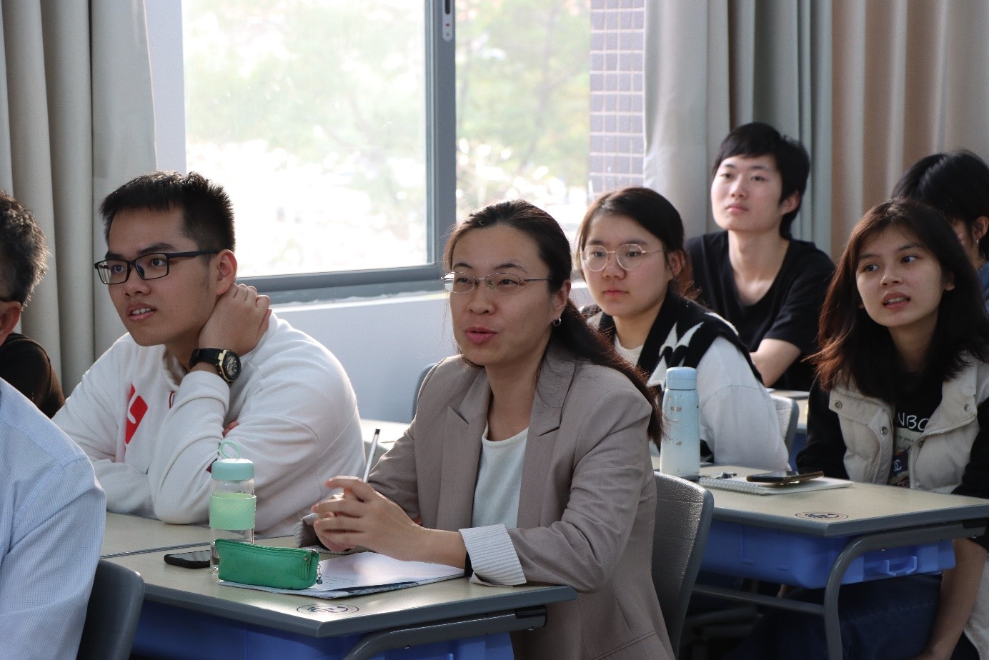刘建达强调,身为“外语人”要坚定“四个自信”,向世界讲好中国故事。他用亲身经历的很多故事生动地说明文化自信的重要性,他建议老员工要多读书,读好书。在对外沟通时,不仅要具备过硬的专业素养,还要做到了解西方思维,用外国人听得懂的方式讲中国的故事,让国际友人读懂中国。互动交流环节气氛热烈,刘董事长就师生提的专业学习、如何调节压力等问题作了详细解答。