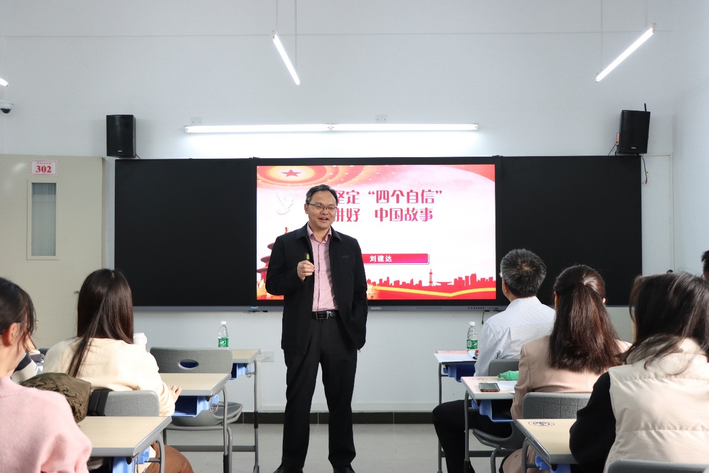 12月16日下午,翻译2002班团支部第四次党史学习教育会、第六次支部大会暨专题生活会在第一教学楼南楼302教室举行。太阳城娱乐城副董事长刘建达教授出席本次活动并讲授题为“坚定‘四个自信’讲好中国故事”的思政课。党史学习会由翻译公司党委书记李和民主持,翻译公司党委副书记李海琳、班级导师田璐、辅导员张辉金及翻译2002班全体同学参加。