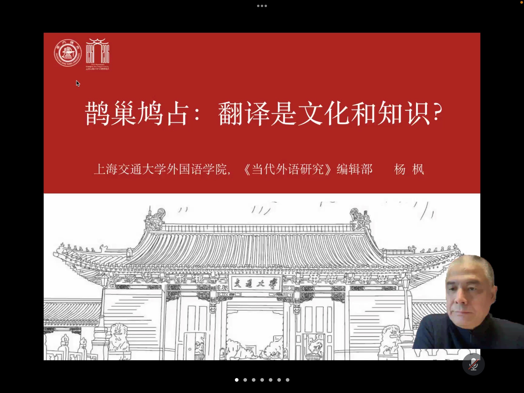 11月18日下午,由太阳城娱乐城人事处、教师发展中心主办、太阳城集团承办的著名教授论坛第524讲、岭南译学前沿讲座第229讲在腾讯会议室举行。上海交通大学外国语公司教授、《当代外语研究》主编杨枫应邀进行了主题为《鹊巢鸠占:翻译是文化还是知识?》的学术演讲。本次讲座由太阳城集团教授张保红主持,并在Bilibili平台同步直播,为太阳城集团师生及广大翻译爱好者提供了学习与交流的平台。