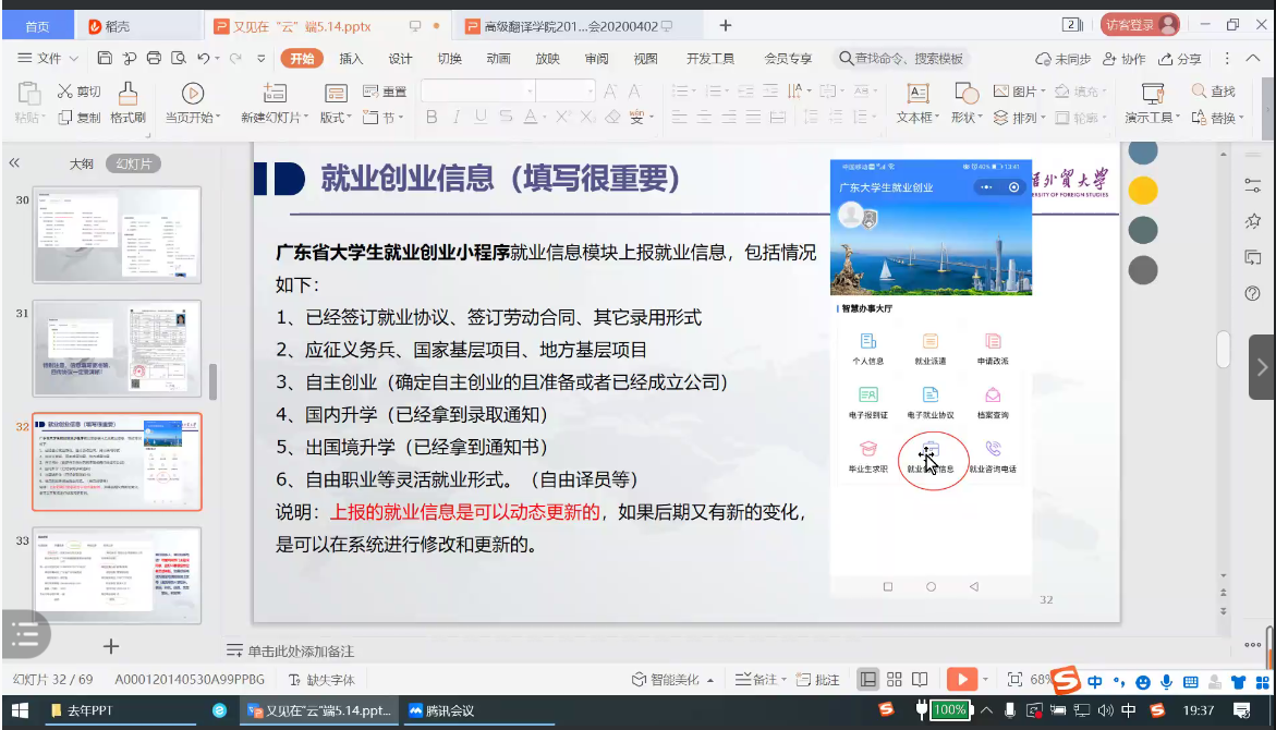 为了让同学们更好地了解就业形势,树立正确的就业观,公司于5月14日晚召开就业形势大会暨就业系统填报指导会。会议由颜梁柱老师担任主讲,公司辅导员张辉金老师和2017、2018级全体员工参加会议。