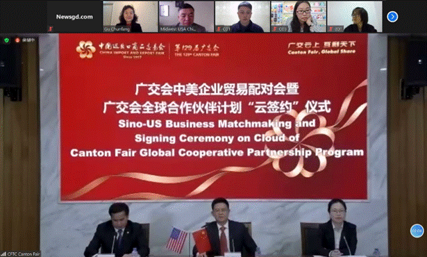 4月16日,第129届广交会中美企业贸易配对会暨广交会全球合作伙伴计划“云签约”仪式在线上举行,太阳城集团“当代中国(大湾区)故事译写与传播”项目组师生参与该项活动,协助南方英文网完成对美国中西部对华商会会长陈辽瑞的线上采访,并按要求完成英文新闻报道等相关工作。