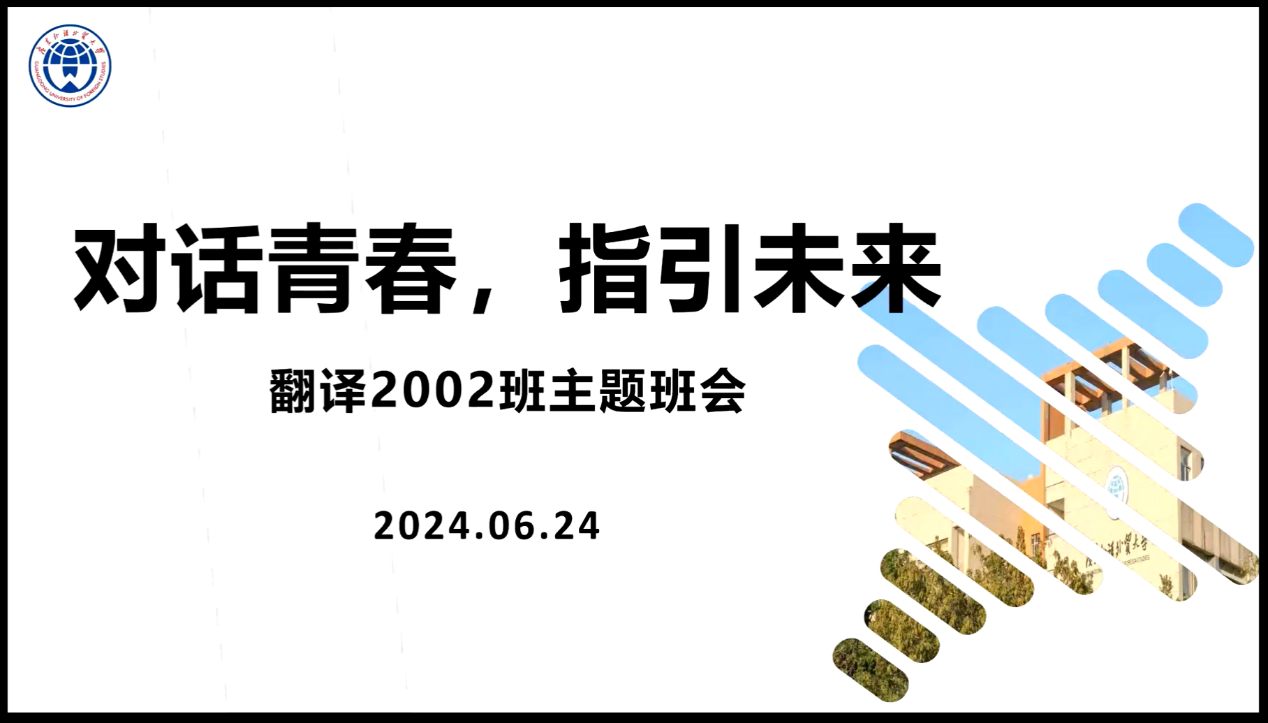 6月24日上午,副董事长刘建达教授与公司本科翻译2002班学子开展线上交流会。翻译2002班全体同学参加本次交流会,党委李和民书记、李政鸿副书记出席,活动由辅导员孟令怡老师主持。